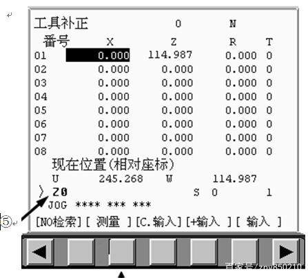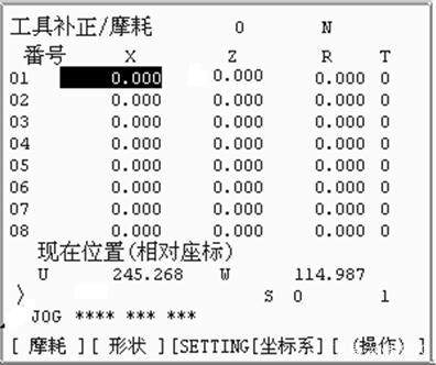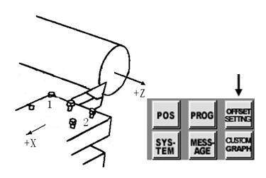 一般操作者最常用最好掌握的方法是采用手动试切对刀法。具体的操作步骤是,先进行零点偏置设置,手动对齐基准刀具到工件的右端面。若工件右端面不平整,必须用基准刀将工件右端面车削平整,然后手动退刀,并且仅仅在x方向退刀,z方向不动,把当前的刀具位置记录到零点偏置里。
